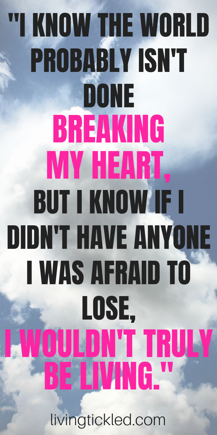 I know the world probably isn’t done breaking my heart, but I know if I didn’t have anyone I was afraid to lose, I wouldn’t truly be living.